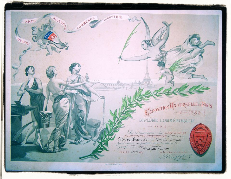 « MEDAILLE d’Or » à l’EXPOSITION UNIVERSELLE de PARIS pour « ses produits Viticoles ».